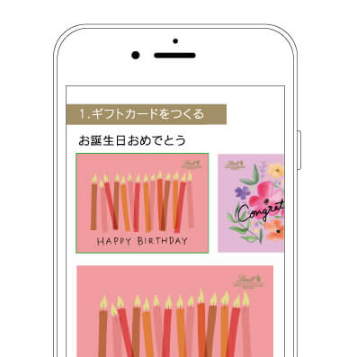 リンツの e-Gift は、メールやSNSを使って、リンツ ショコラ カフェ、リンツ ショコラ ブティックで使えるギフトチケットを、メッセージ付きで贈ることができるギフトサービスです。
